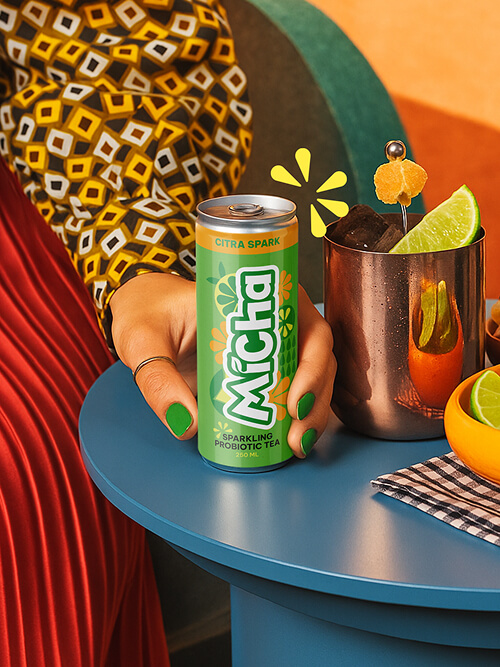Inside every can of MiCha, you will find a carefully crafted blend of brewed tea, active live probiotics, and natural fruit extracts, all brought to life with a gentle, honest fizz. We have ensured it is low in sugar and completely free from any added preservatives, offering you pure, good-for-your-gut refreshment.